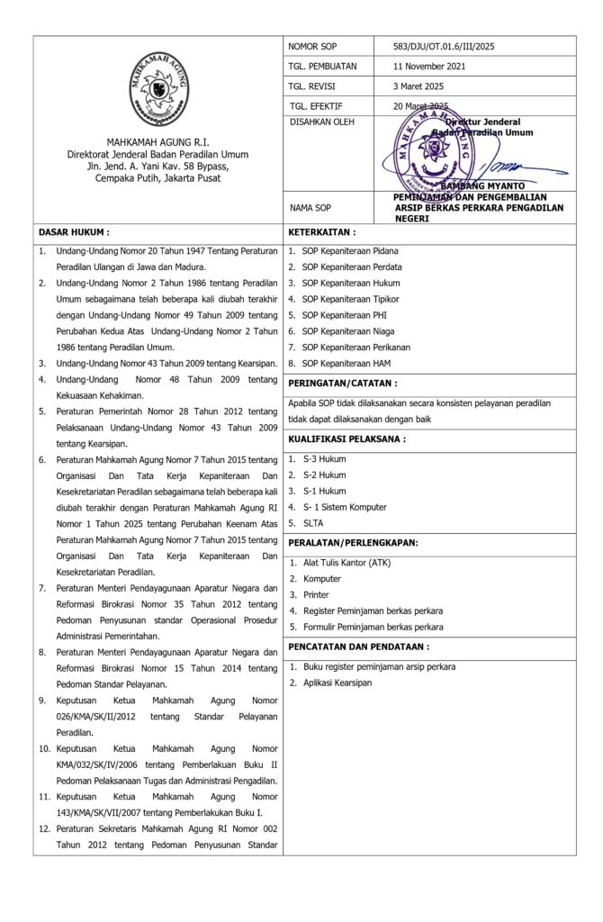 SOP Peminjaman dan Pengembalian Berkas Perkara