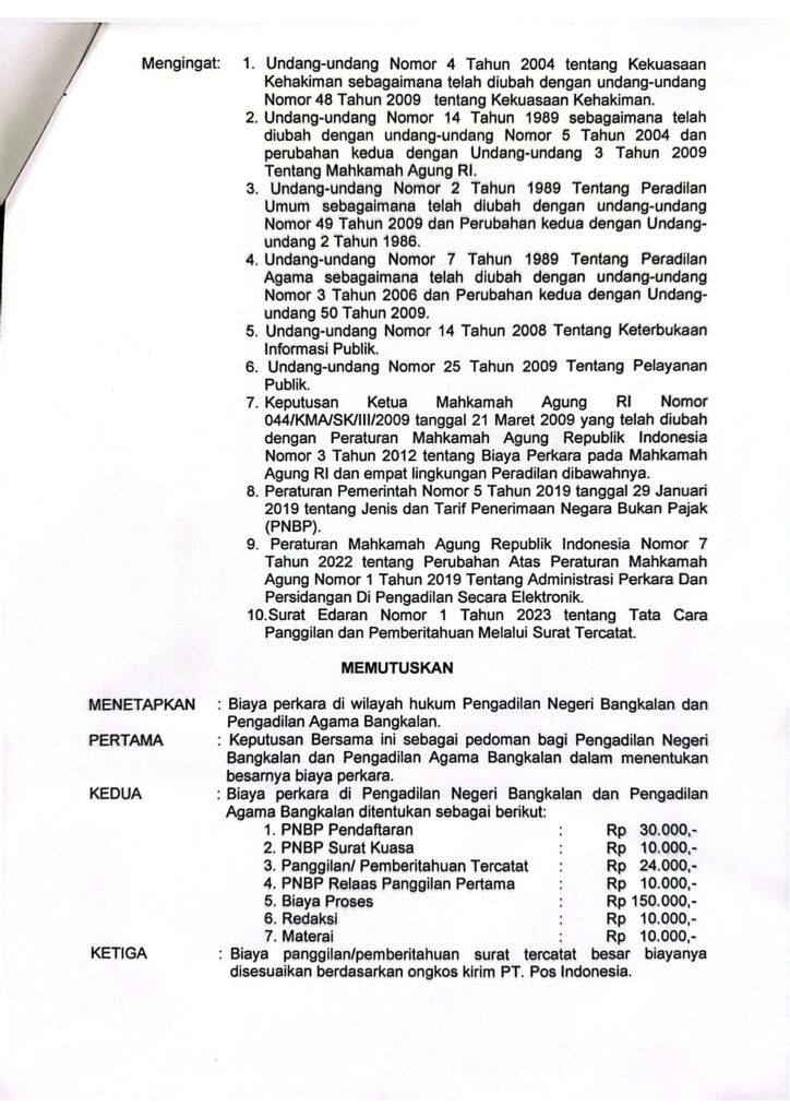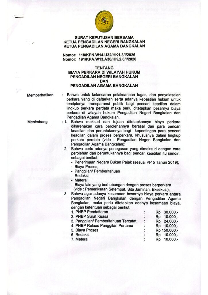 Panjar Biaya Perkara Perdata Pengadilan Negeri Bangkalan