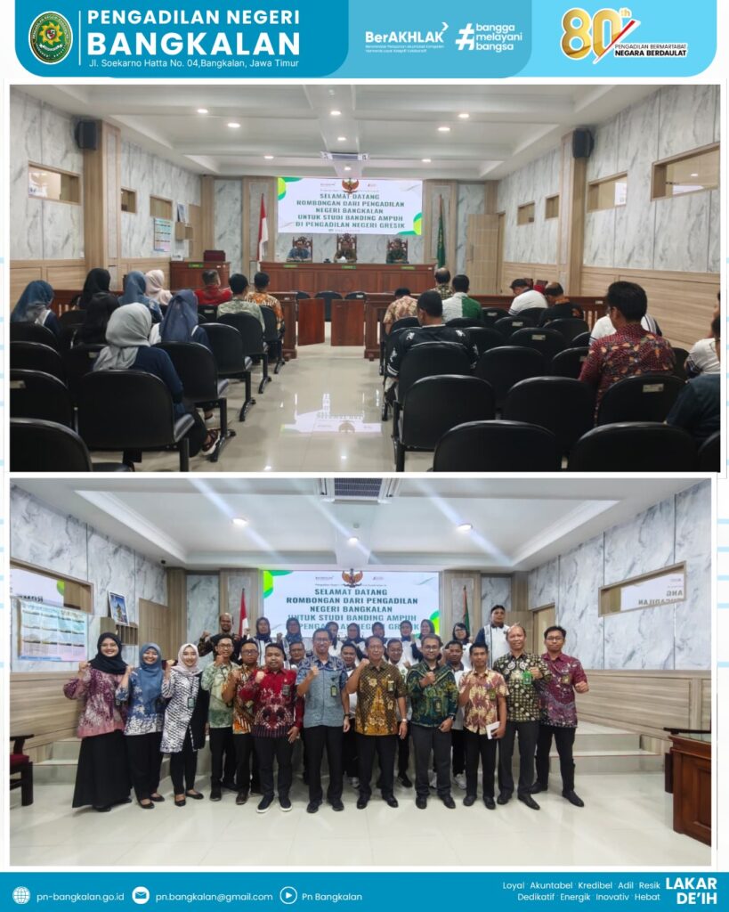 Pengadilan Negeri Bangkalan melaksanakan kegiatan studi banding ke Pengadilan Negeri Gresik dalam rangka meningkatkan kualitas pemenuhan dokumen AMPUH Badilum.